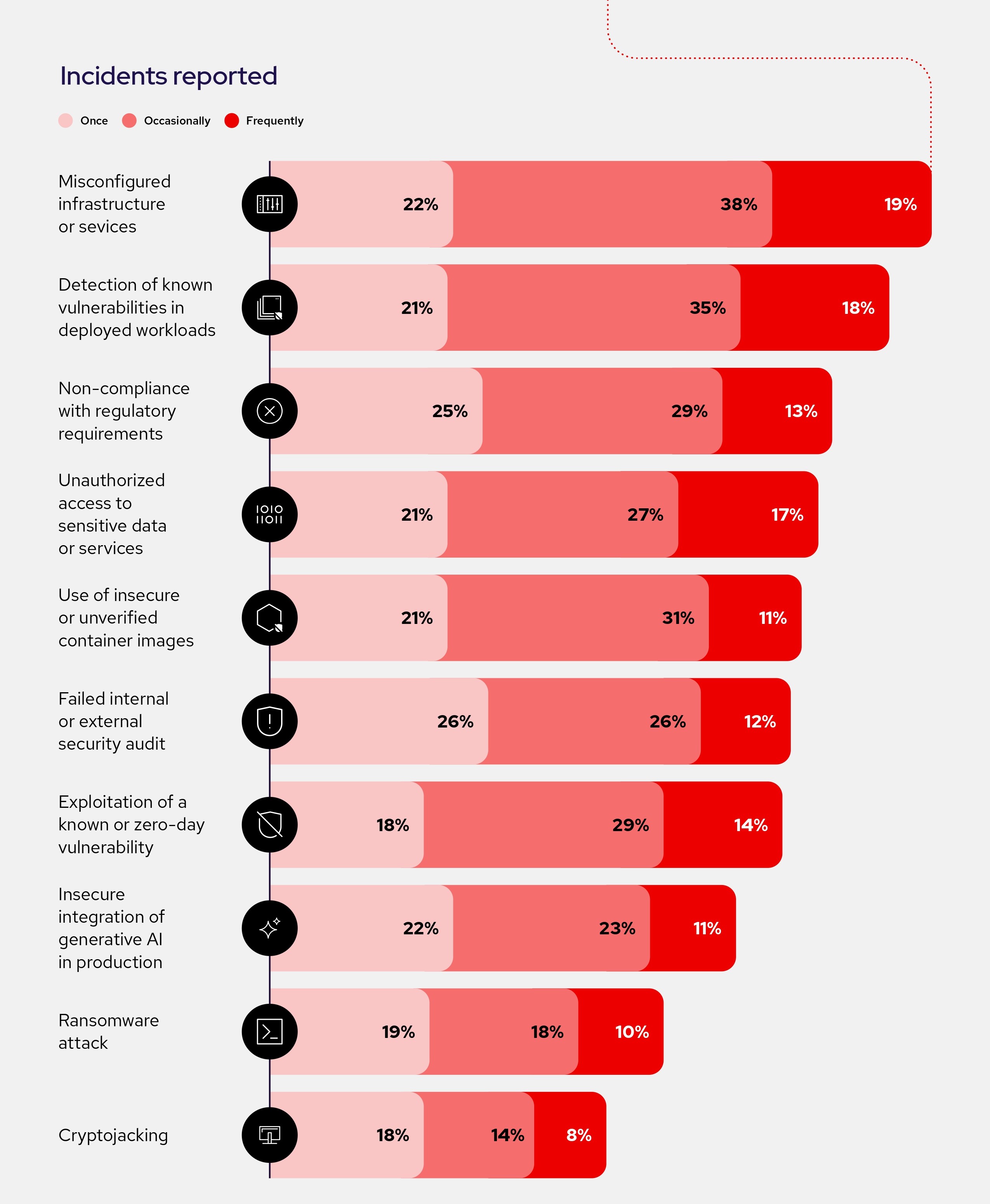 報告中揭露一個發人深省的關鍵:安全事件現已成為近乎普遍的經驗。97%的受訪企業在過去一年中至少發生過一次雲端原生安全事件,這並非一次性的複雜攻擊,反而往往是「日常疏失」導致的結果。