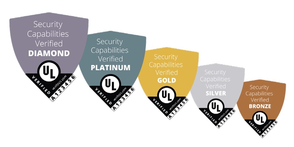 UL根據前20大IoT資安設計準則,融合產業標準共識,訂定出IoT安全評等,考量七大類別,包括:安全軟體更新、資料加密、安全通訊、隱私需求、系統管理、邏輯安全、文件流程需求,以40多項測試項目進行嚴謹的評估,可從產品設計環節就導入安全防護規範,用五個安全等級:鑽石、白金、金、銀、銅,區分產品的資安防護能力。製造商只需透過1-3週的一次性產品評估,並後續每半年一次的監測,就能成本時間兼顧,降低資安漏洞風險。