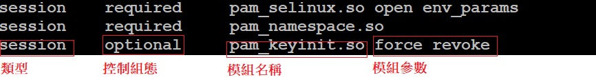 此組態主要是設定PAM模組的行為,常用的組態如下所述: