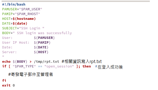 介紹過pam_exec模組後,接下來實作SSH成功登入後,即寄發電子郵件至管理者的功能。