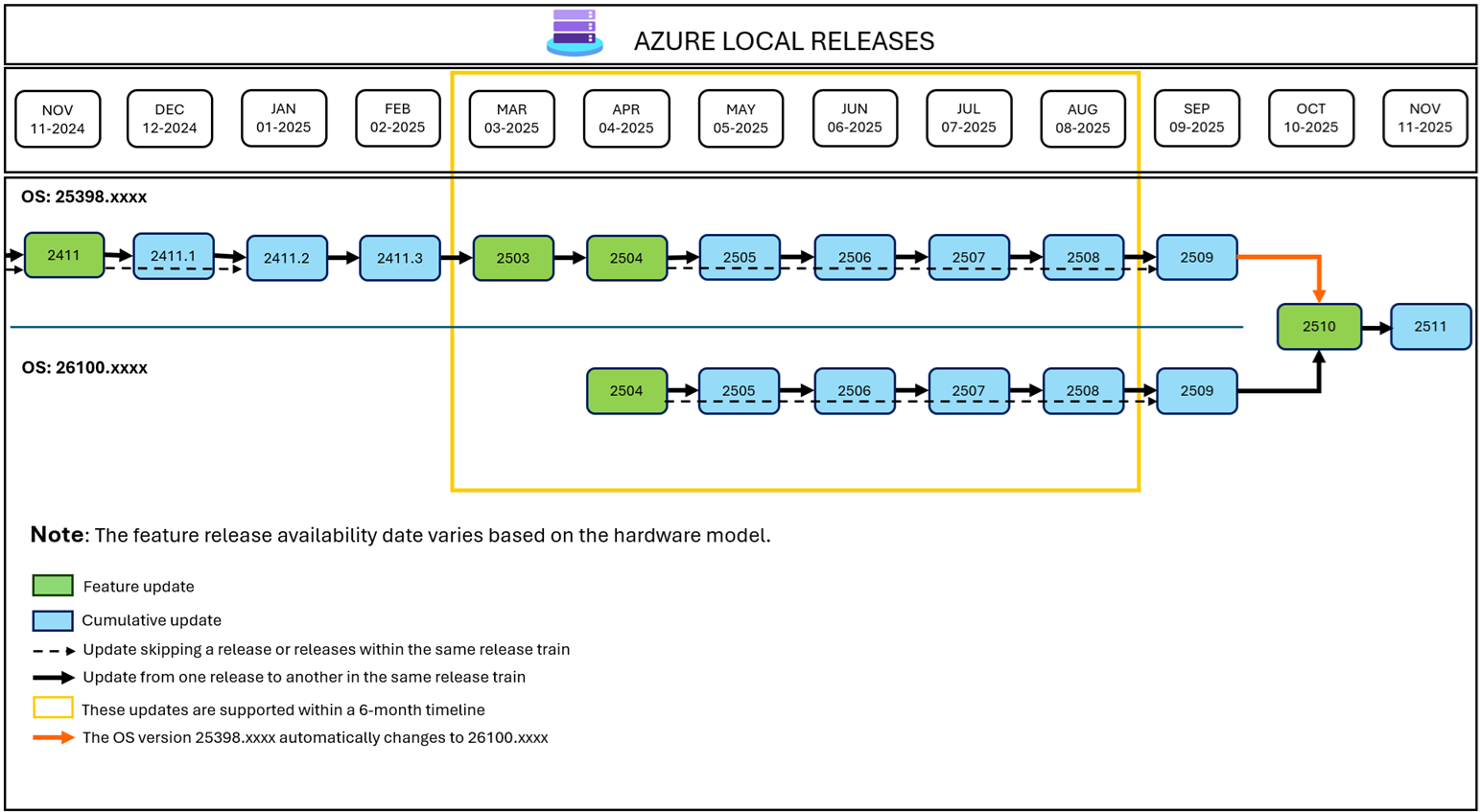圖2 Azure Local版本更新週期示意圖。 (圖片來源:Azure本地版本23H2和24H2發行資訊 - Azure Local | Microsoft Learn)