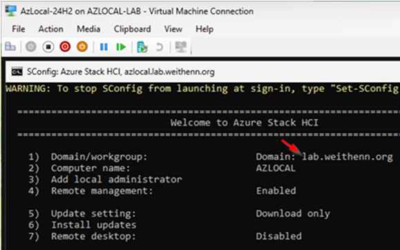 圖10 為Azure Local主機進行基礎設定並加入lab.weithenn.org網域環境。