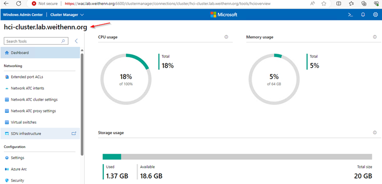 由於傳統的容錯移轉叢集管理員無法管理Azure Local超融合叢集,此時可以透過Windows Admin Center(WAC)輕鬆地在GUI圖形介面中管理Azure Local超融合叢集。同時,最新版本的WAC管理平台也已經完整支援單節點的Azure Local超融合叢集,無論是管理和組態設定,或是新增及建立相關工作負載都可以,例如VM虛擬主機、容器等等。