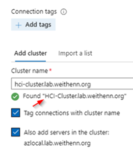 在本文實作中,另外部署一台安裝Windows 11作業系統的VM虛擬主機,並安裝WAC管理平台,當管理人員順利通過使用者身分驗證機制,登入WAC管理平台後,依序點選「Add > Add or create resources > Server Clusters > Add」,在Add Cluster欄位中鍵入「hci-cluster.lab.weithenn.org」叢集名稱,系統便會自動掃描和探索到Azure Local超融合叢集,如圖15所示。
