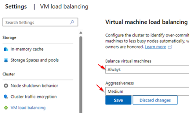 在VM虛擬主機工作負載平衡方面,也可以視實際需求進行調整,預設情況下自動平衡模式為「Always」,表示每隔「30分鐘」系統會估算資源負載情況後,進行VM虛擬主機的負載平衡作業,在自動平衡積極度方面預設值為「Medium」,表示當叢集節點主機工作負載超過「70%」時,將會針對VM虛擬主機進行負載平衡作業,如圖19所示,詳細資訊請參考「Virtual machine load balancing - Azure Local | Microsoft Learn」文件內容。