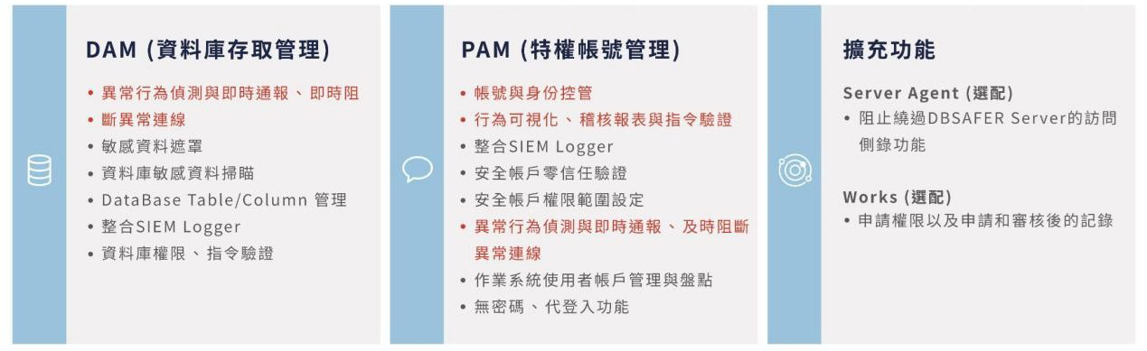 圖2 DBSAFER模組功能,建構一站式資安防護。