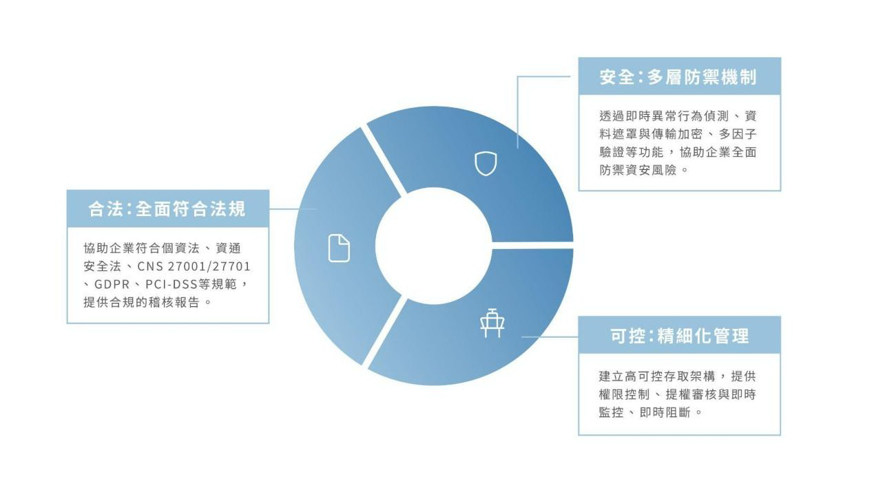 圖3 DBSAFER全方位防護,充分展現合法、可控、安全之要素。