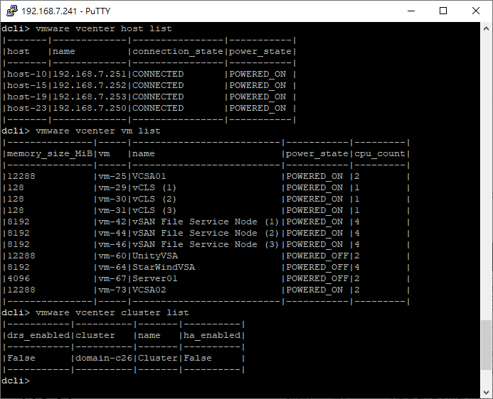 vmware vcenter host list vmware vcenter vm list vmware vcenter cluster list