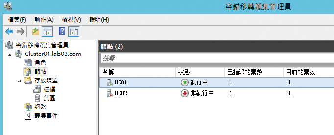 完成容錯移轉叢集的功能安裝後,還必須到「控制台」中開啟「iSCSI啟動器」,完成前面所講解過的iSCSI Target連線,然後進行叢集磁碟代號的設定。接著回到「容錯移轉叢集管理員」介面,切換至「節點」頁面並點選「動作」窗格內的「新增節點」。