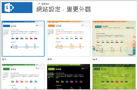 預設的網站樣式或佈景主題可能不會是使用者想要的,那該如何變更呢?先到「網站設定」頁面內,點選開啟如圖41所示的「變更外觀」精靈頁面,在此挑選網站外觀的風格。