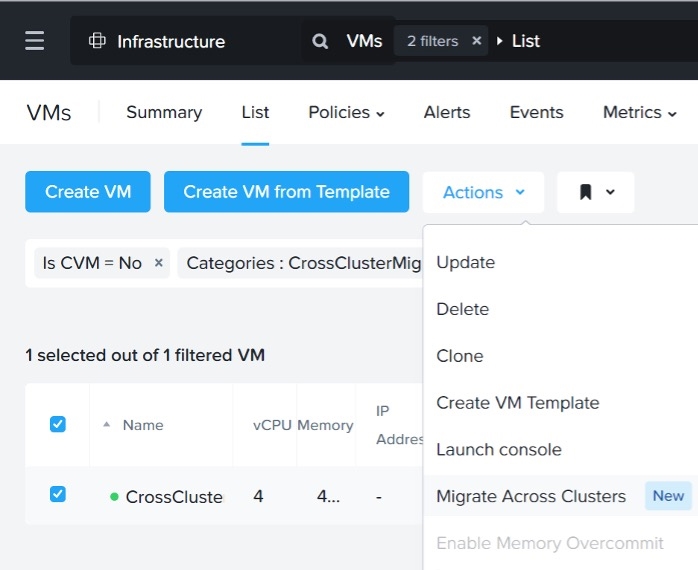 圖8 透過PC管理主控台跨叢集即時遷移VM虛擬主機。 (圖片來源:Highlighting Key New Capabilities for major AHV update in AOS 6.7)
