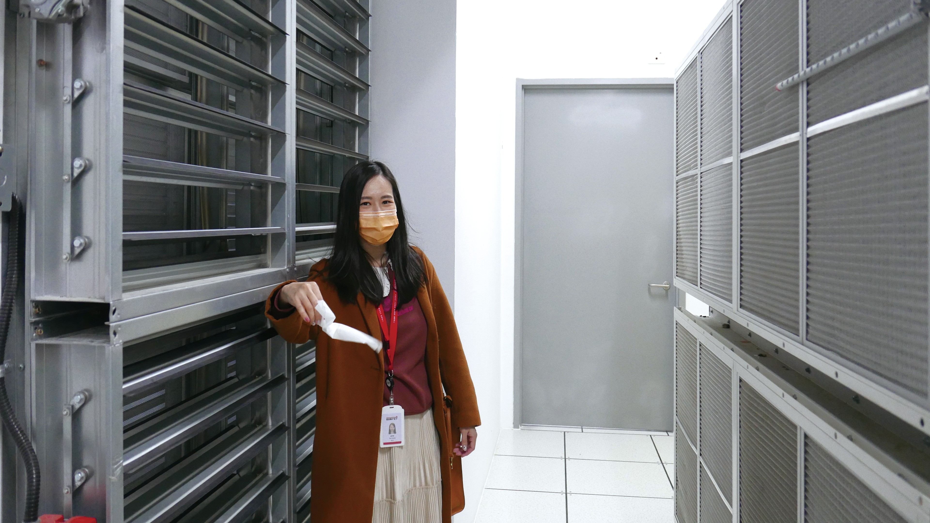 維修廊道緊鄰自然進氣冷卻系統,圖中閘道開啟,衛生紙自然飄揚,顯示正在進氣中。