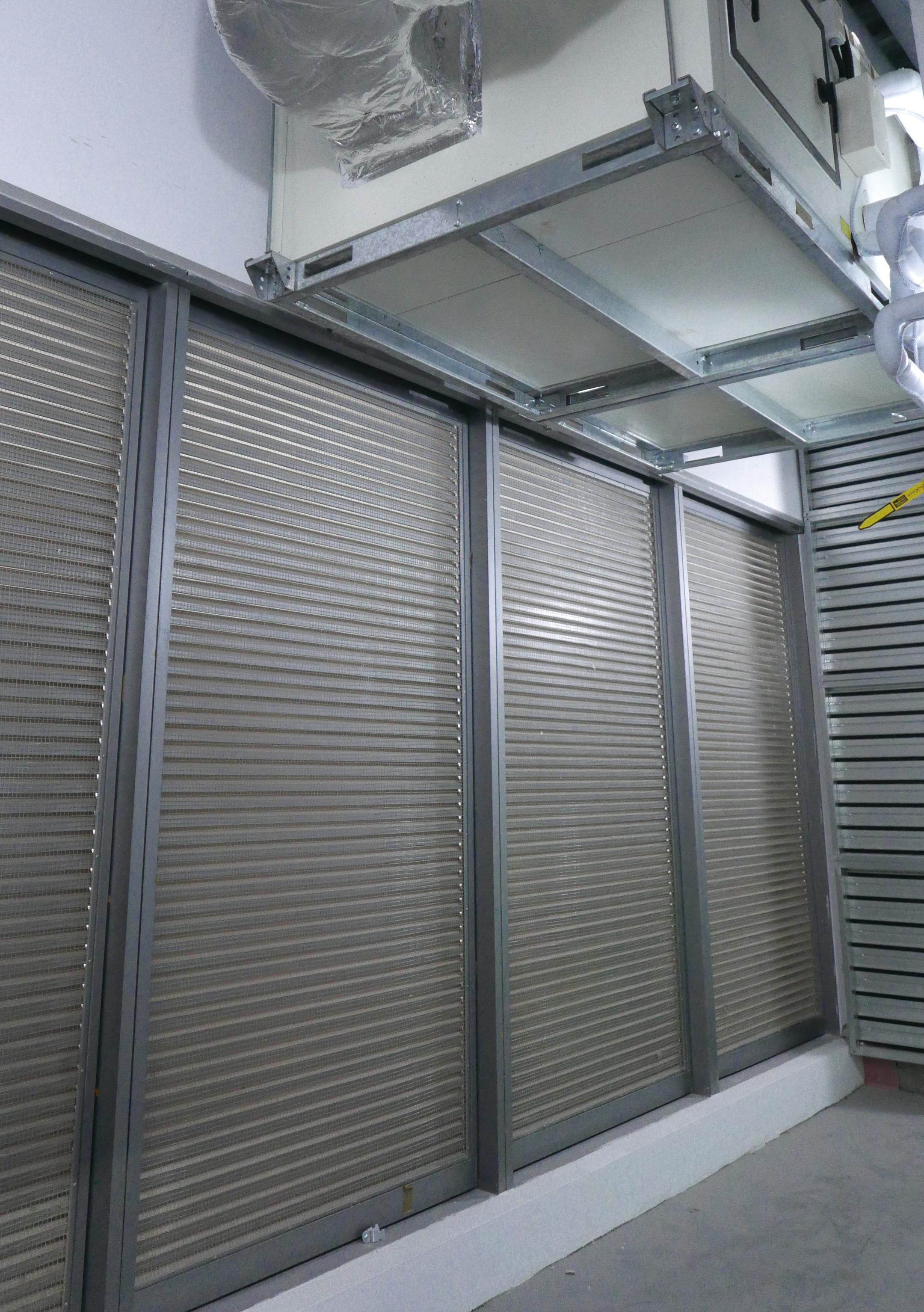 整個牆面進風後經到落塵室再過濾後,從閘道出風。圖為落塵室一隅。
