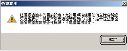 在上述操作設定中可能會出現如圖7所示的警告訊息,無須理會,直接按下〔確定〕按鈕繼續。