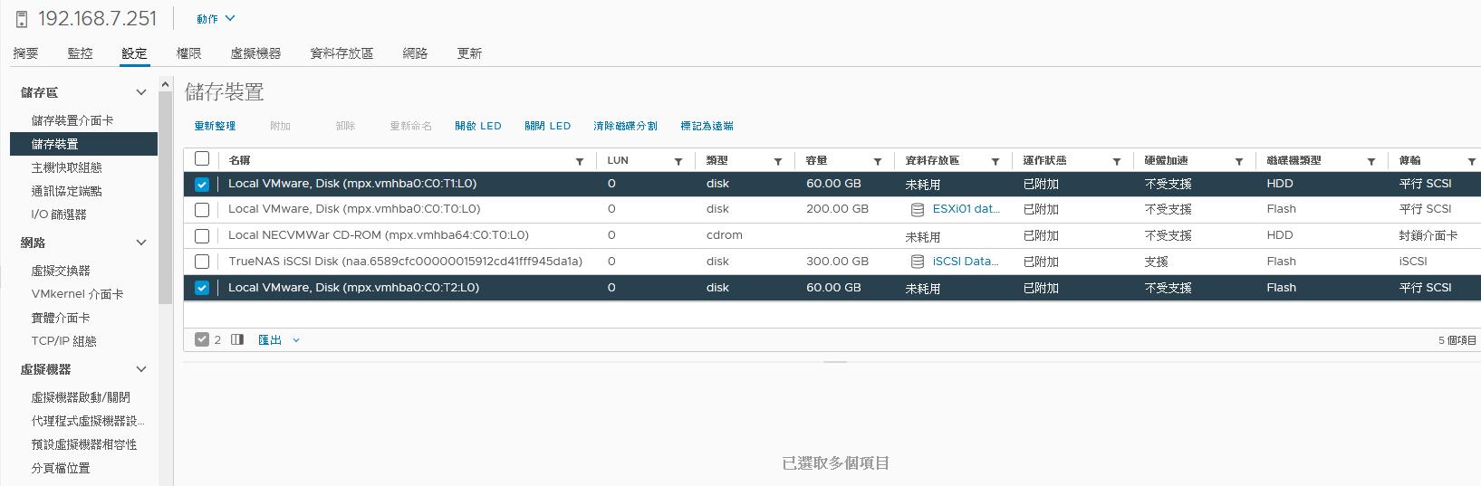 圖5 vSAN主機磁碟準備。