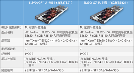 基於這個看法,郭裕昇推薦HP ProLiant SL390s G7伺服器,他提到,基於空間以及管理效益的考量,常見的選擇是刀鋒伺服器,刀鋒伺服器的優點不僅是省電、省空間,而且管理方便,但是刀鋒伺服器也有一些缺點,有些企業認為刀鋒伺服器的擴充性不佳,因此選擇採用傳統機架式的伺服器。而HP ProLiant SL390s G7雖然是機架式設計,但電源以及風扇共用,在4U的空間可以有8個節點,每個節點都是獨立運作,因此同時也具有部分刀鋒的優點,而且一樣有獨立的光纖與網路,幾乎都是內建10GbE,適合企業水平擴充的需求。