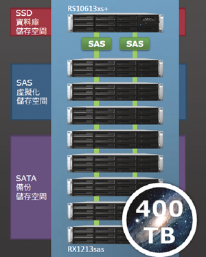 「由於在一整個機櫃中同時支援SAS、SATA以及SSD,因此企業可整合不同層級的儲存需求進行配置,例如SSD用來提供資料庫儲存空間的應用,而SAS硬碟區則可提供虛擬環境需求,而SATA硬碟區則可以作為備份之用。」安玟宇表示,群暉也提供了RAID Group功能設計,透過將多顆硬碟多顆硬碟分成不同RAID群組的作法來增強對資料保護的能力。另外,也提供了High-Availability Manager功能,企業可以透過HA架構的部署來確保資料運行不中斷。
