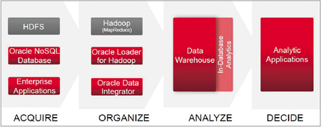 | ▲Oracle Big Data平台針對收集、組織、分析、決策,四階段的發展方向。(資料來源:Oracle) |