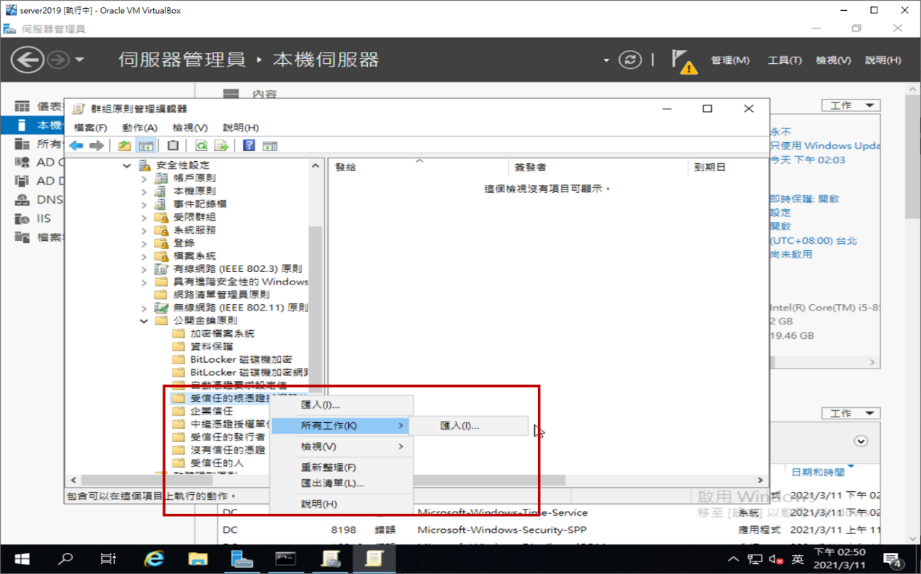 先將信任PKI憑證新增到AD群組原則物件中的根信任,如圖4~5所示。