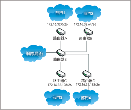 路由匯總的英文全名是Route Summarization,又稱為Route Aggregation或Super-netting,其主要目的在於將多筆路由資訊匯總成比較簡單的單筆路由資訊。