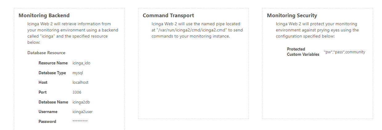 接著,利用瀏覽器連線至「http://[SERVER-IP]/icingaweb2/setup」,並依照以下步驟進行後續的設定:
