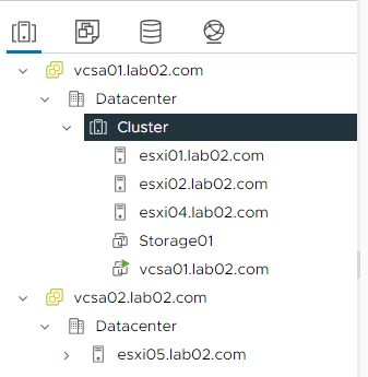 完成新vCenter Server的部署後,如圖2所示,在vSphere Client主機與叢集管理頁面中就可以查看vcsa01.lab02.com與vcsa02.lab02.com這兩台vCenter Server,不僅讓分支辦公室的IT人員能夠管理自己vCenter Server下的所有ESXi主機相關資源,還能讓總公司最高權限的IT人員隨時因應管理需求,在不同的vCenter Server之間遷移虛擬機器,例如讓某一個已經在總公司完成測試的應用系統,透過移轉(vMotion)功能遷移至分公司網路中運行。