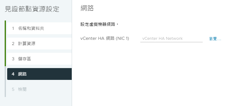 按下〔下一步〕按鈕,來到「網路」頁面,如圖18所示,選擇所要使用的管理網路和vCenter HA網路,再按下〔下一步〕按鈕。最後,在「檢閱」頁面中確認上述步驟設定無誤後,按下〔完成〕按鈕即可。