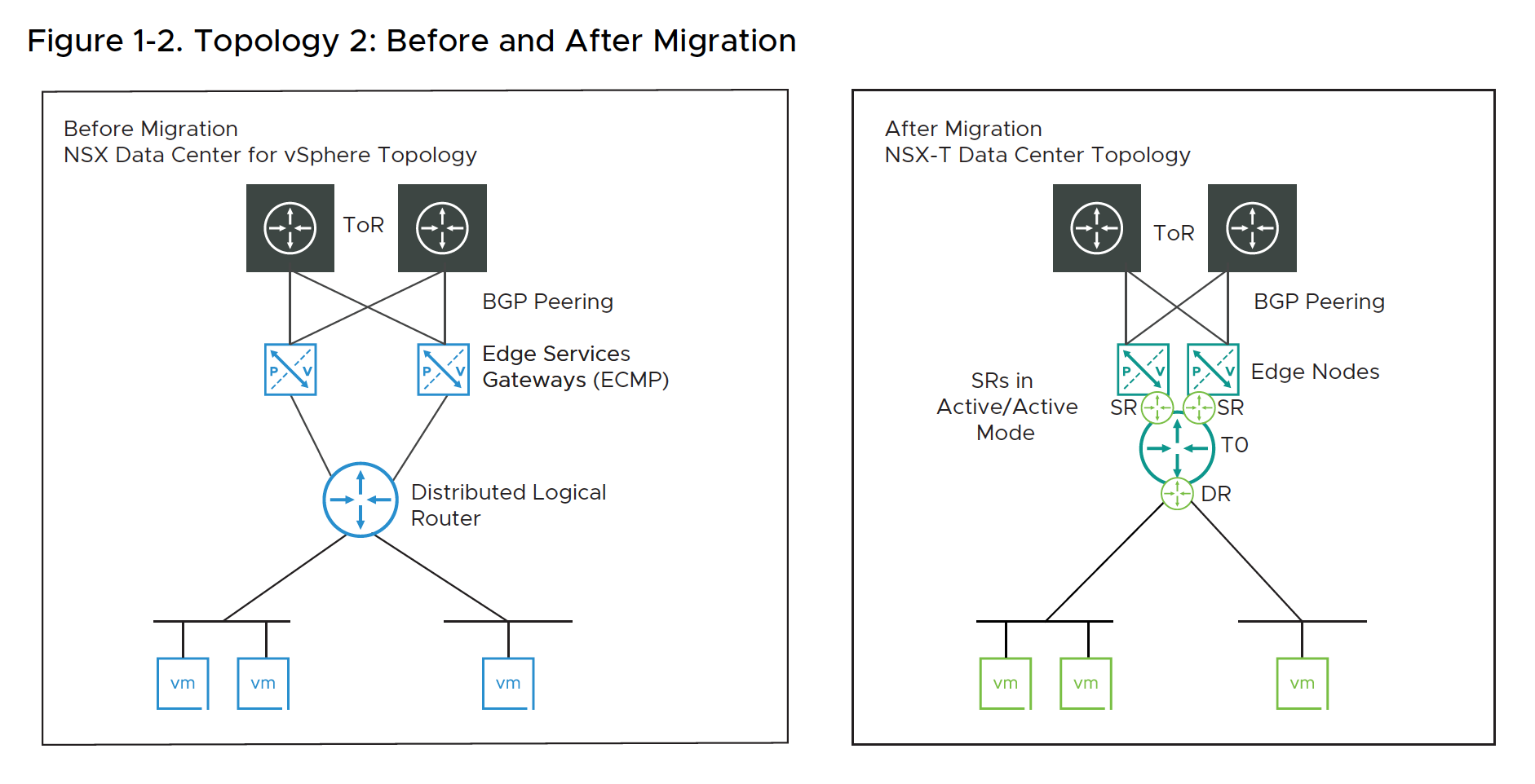 採用此流程時,原本的V版環境必須只能是四種拓樸的一種,如圖3~6所示,截圖自NSX-T Migration Guide。