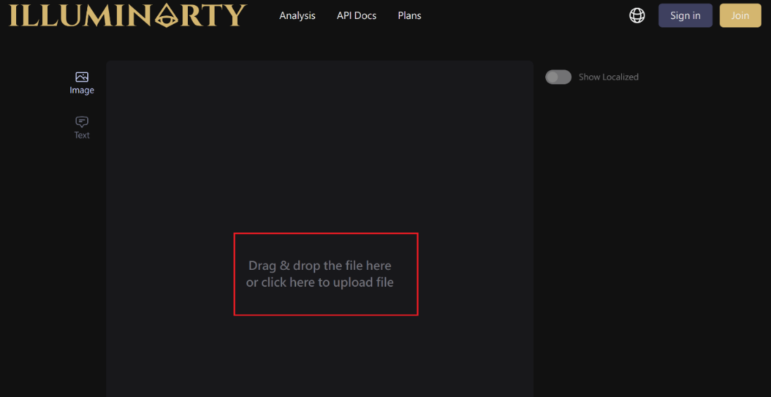 Illuminarty也是一款網頁型的工具,其與AI or Not皆是可以用來檢測是否為AI生成、合成和篡改的圖片,但Illuminarty能夠檢測Deepfake過後的圖片。Illuminarty主要分成免費版和付費的版本,若使用免費版的功能,則僅有簡單的AI文字和AI圖片的分類,倘若是付費的版本,則依據購買的方案開通進階功能,如AI圖片辨識和使用其提供的API等。本文範例只須使用免費的功能即可,不必額外購買付費方案。