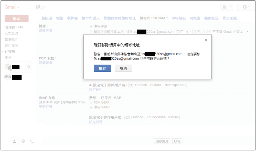| ▲圖18 移除小泰信箱轉寄設定。 |
