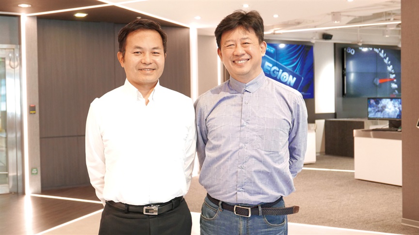 台灣聯想環球科技高級技術經理林旭堂(左)指出,邊緣運算就是將邊緣伺服器放到事件發生最前緣的場域中,並且做到即時、精確以及快速這三樣元素。右為台灣聯想環球科技IoT/Edge伺服器研發總監江建勳。