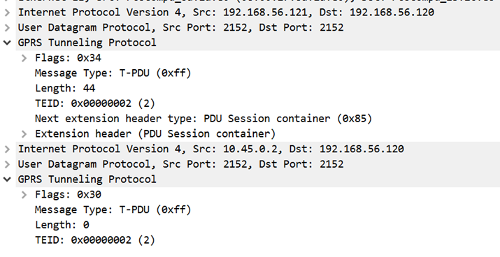 GTP-U是一種存在於基地台與5G使用者平面之間的通道協定(Tunneling Protocol),使用連接埠2152。圖2是使用者資料封包被封裝(Encapsulate)在GTP-U當中的樣子。