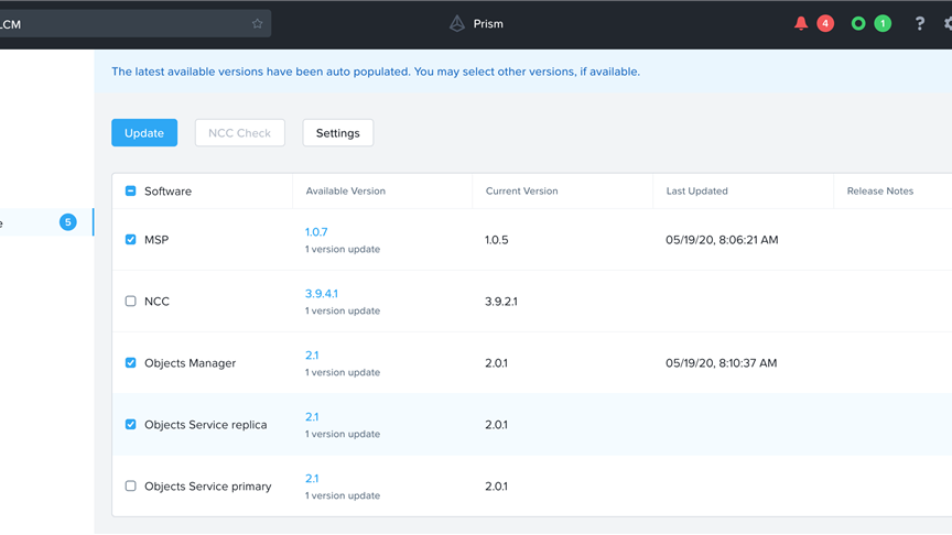 Nutanix Lifecycle Manager (LCM)可實現Nutanix軟體堆疊及設備韌體的一鍵式無間斷升級,升級期間不會造成任何的軟體或基礎架構停機。LCM能夠自動判斷任何軟體和韌體的相關性並安排升級的優先順序,以完成整個升級過程的編排,進而提升基礎架構的安全性和彈性。與其它的Nutanix解決方案一樣,LCM能夠隨時隨地管理全球Nutanix環境。