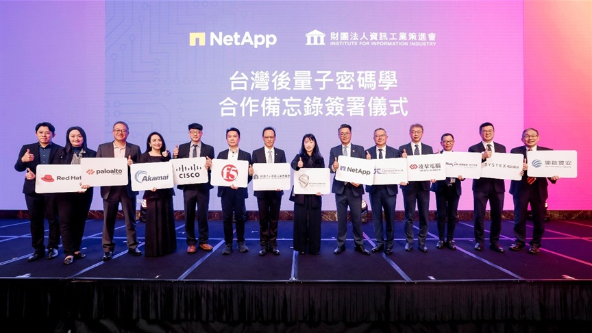 NetApp宣布與財團法人資訊工業策進會簽訂合作備忘錄(MOU),共同就數位發展部數位產業署所聚焦推動的後量子密碼學(PQC)資安議題,探討最佳實務應用方向。生態系夥伴亦包含Akamai、思科、F5、Palo Alto Networks、Red Hat等業界巨擘,以及凌群電腦、敦陽科技、開啟資安、華電聯網、精誠資訊等台灣知名系統整合商,將共同攜手合作,推動台灣後量子密碼學資安技術升級。