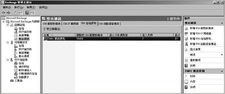 在如下圖所示的〔UM撥號對應表〕活頁標籤中便是已新增一筆撥號對應表的情況。接著,點選同樣位於「動作」窗格中的「新增UM IP閘道器」連結。