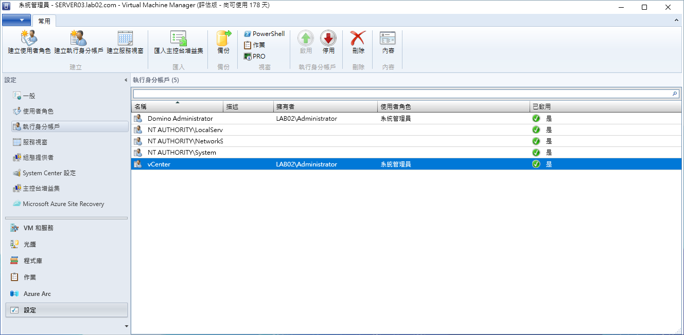 在SCVMM 2025管理員介面中,想要連線管理vSphere架構下的ESXi主機,就如同連線管理Hyper-V主機一樣,必須先建立好執行身分帳戶,這樣才能夠在建立連線的過程中直接選擇對應的執行身分帳戶。