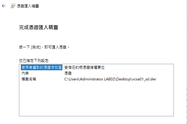 圖5 完成vCenter憑證匯入。
