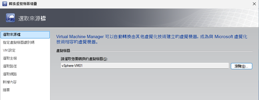 轉換vSphere虛擬機器至Hyper-V