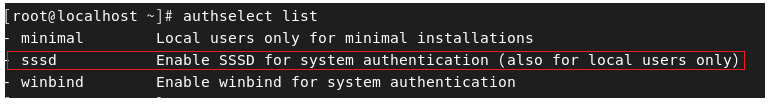 authselect是使用配置檔(Profiles)方式來維護相關組態設定,並提供相關預設配置檔。這裡使用名稱為sssd的預設配置檔進行設定。