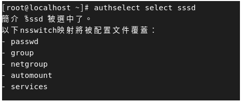圖7 使用「authselect select sssd」來選擇sssd配置檔。