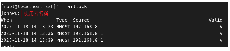 faillock #顯示被faillock封鎖的資訊
