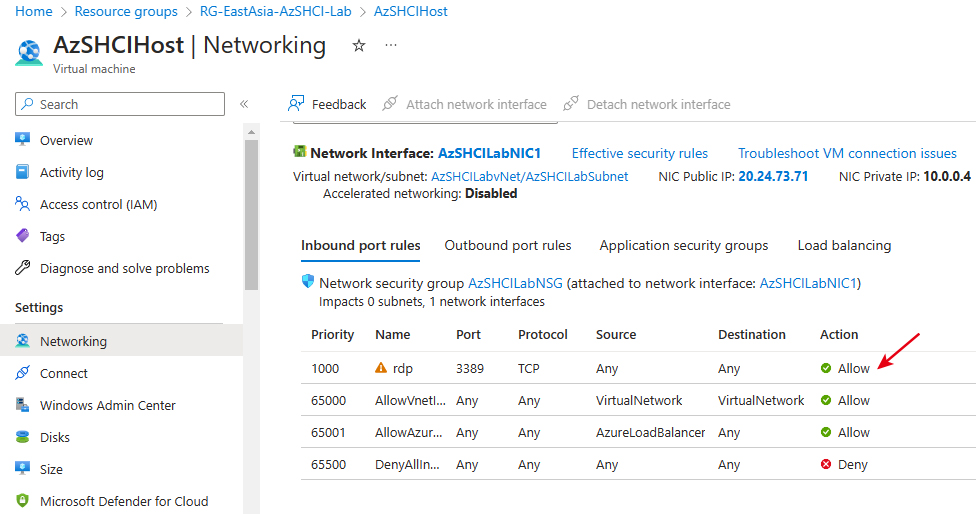 圖11 將NSG預設阻擋RDP Port 3389的防火牆規則,調整為Allow允許放行即可。