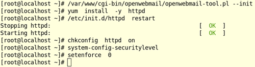 記得開啟防火牆的80埠。至於SELinux,openwebmail的readme.txt指示必須關閉,所以必須設定成permissive或disabled。處理防火牆和SELinux都可以使用指令「system-config-securitylevel」來完成。若只是暫時關掉SELinux來測試Open WebMail,使用指令「setenforce 0」即可。