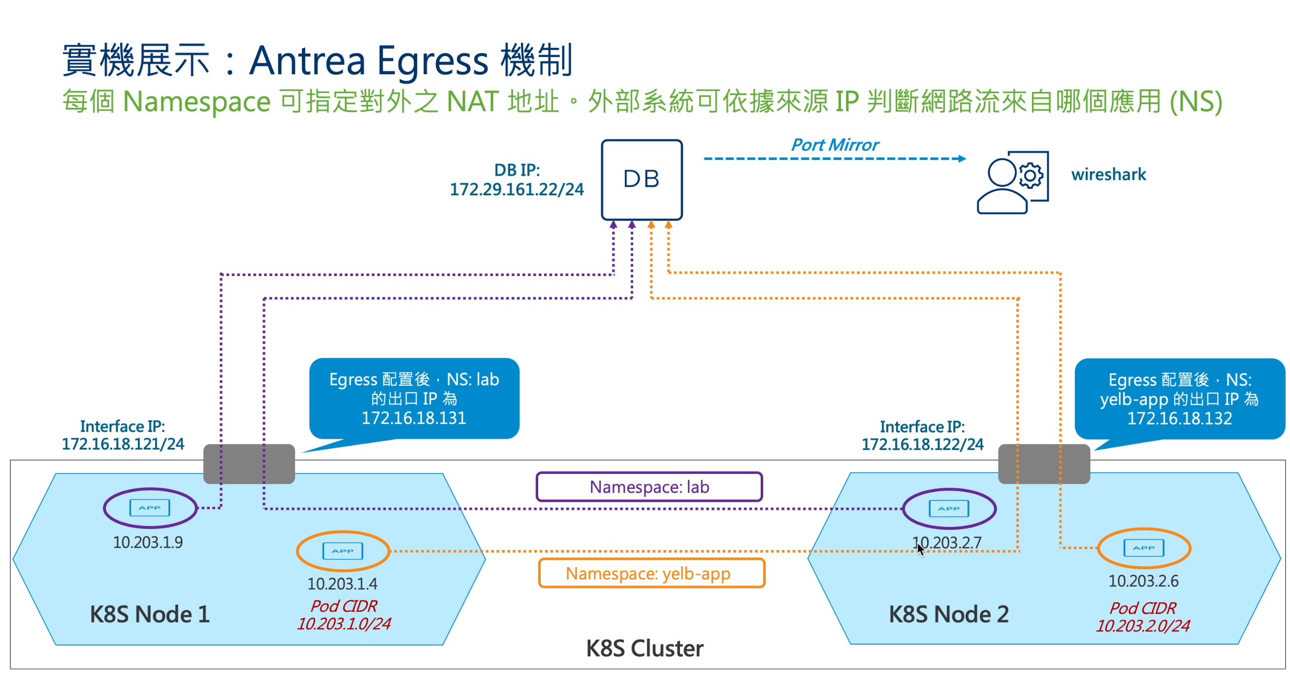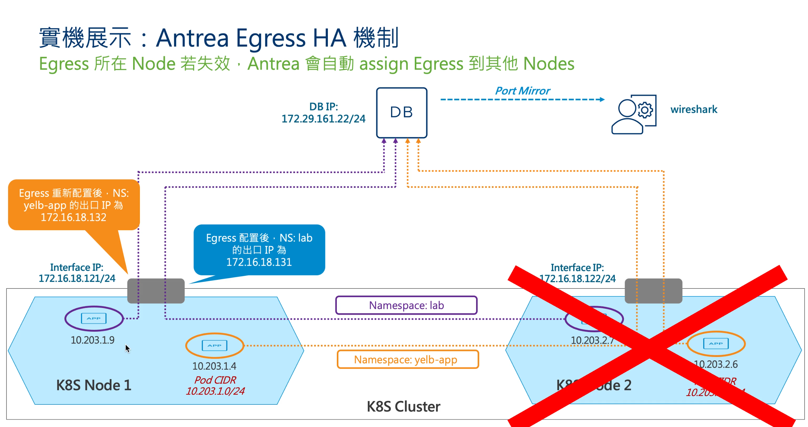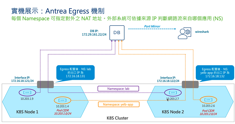 圖1 實機展示:Antrea Egress機制。
