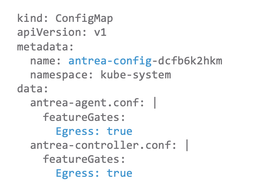 首先要說明,在前篇文章有討論過,只要版本有支援,要啟用Egress功能可以直接改Antrea的ConfigMap,將Egress功能設定改為True。而在社群版本1.6之後,Egress功能進入Beta階段,甚至預設就打開了呀?但須注意的是:
