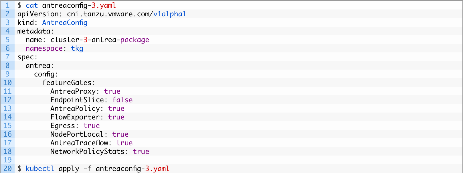 圖9 在建立TKC之前,先配置一個AntreaConfig,並在featureGates內將Egress功能開啟。