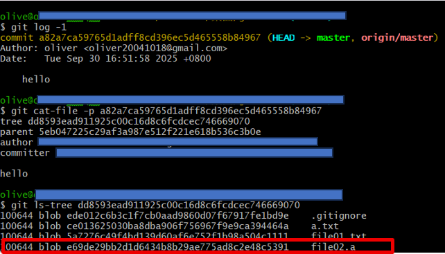 ‧blob檔案內容:blob負責儲存檔案的內容,但不包含檔名,每次執行git add時都會生成新的blob。