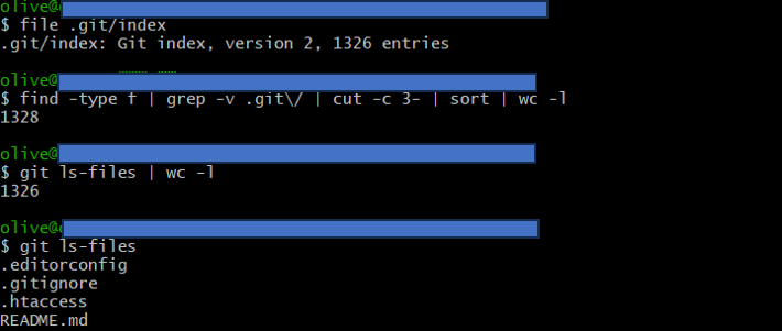 又稱索引或暫存區檔案,主要負責暫存已經被git add的檔案,並記錄檔案路徑、模式、blob hash以及修改時間等資訊,如圖13所示。當使用git commit時,Git會依據index的內容建立新的tree物件,因此index可視為提交的準備區。index最重要的功能包括能讓Git快速比對working tree跟index所定義的tree之間的差異,以判斷哪些檔案被修改過,不需要每次都讀整個檔案內容來比較;若是在操作merge合併而產生衝突時,操作者也可以從index裡取得相關資料協助解決衝突。