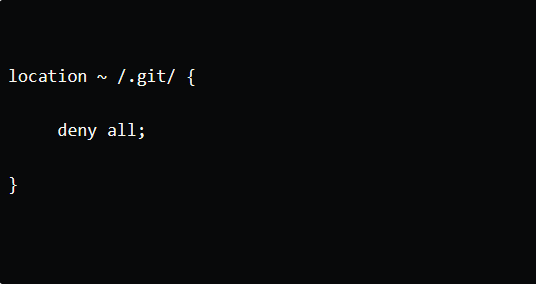 許多開發者在架設網站或製作網頁的時候,會直接將整個專案資料夾放到網頁的根目錄裡,但如果沒有特別排除.git目錄且網頁伺服器啟用了目錄清單功能的話,就有可能導致整個版本庫原封不動地暴露在網路上。不論是使用Apache、Nginx或其他伺服器,只要沒有明確限制存取.git目錄,存取者只須連線到儲存庫的URL即可存取該目錄,直接列出伺服器資料夾中的檔案內容。因此,在最初部署或架設伺服器的時候,開發者就應該主動封鎖.git目錄的存取,如圖15以Nginx的nginx.conf檔案為例所示。