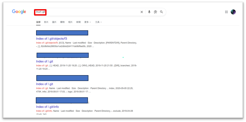可以使用Google Dorking來發現暴露的.git目錄。在Google中使用指令「inurl:.git」,如圖16所示。